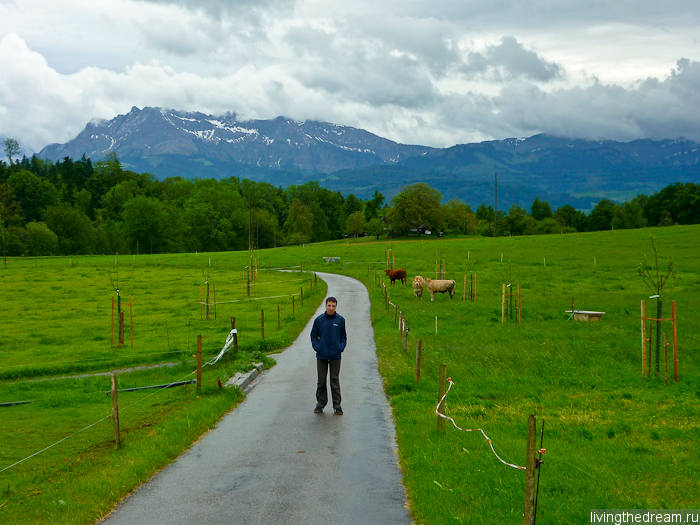Один день посвятили поездке в Люцерн, это 10 километров пути, для тандема без багажа — просто ерунда. Насмотрелись достопримечательностей, полюбовались Пилатом и вернулись на ферму. Вечером Паскаль и Том согласились на наше предложение и покатались на тандеме, оказалось интересно увидеть эмоции людей, попробовавших такой вид передвижения впервые. У Тома — радость и энтузиазм, у Паскаль — шок от езды стокером.